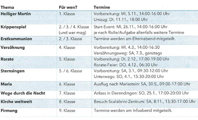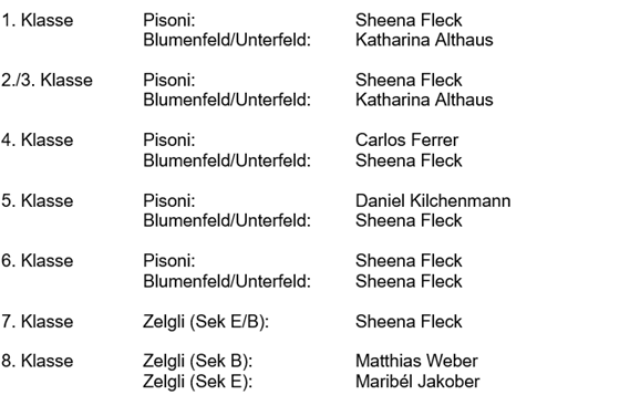 Konfessionelle Fenster bis 5. Klasse: Pascal Eng (Gesamtleitung), Sheena Fleck, Katharina Althaus, Corinne Marty, Ruth Vescovi, Tanja Pürro